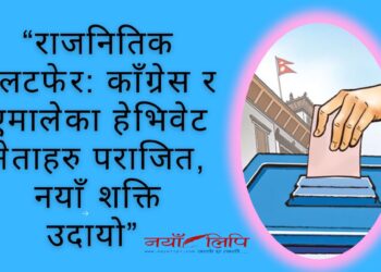 “प्रत्यक्षतर्फ काँग्रेस दुई सिटमा सिमित, हेभिवेट नेताहरु पराजित” by नयाँ लिपि २०८२ फाल्गुन २, शनिबार ०९:५० गते 0 Facebook Twitter बिशेष Read more मतगणनामा रास्वपाको लहर: १६१ क्षेत्रमा नतिजा, १२४ सिट जित by नयाँ लिपि २०८२ फाल्गुन २, शनिबार ०९:५० गते 0 Facebook Twitter बिशेष Read more समाचार All बिशेष “प्रत्यक्षतर्फ काँग्रेस दुई सिटमा सिमित, हेभिवेट नेताहरु पराजित” by नयाँ लिपि २०८२ फाल्गुन २, शनिबार ०९:५० गते 0 Facebook Twitter Read more कारागारबाट फरार कैदीलाई प्रहरीले पोखरामा समात्यो २०८२ फाल्गुन २, शनिबार ०९:५० गते Facebook Twitter मतगणनामा रास्वपाको लहर: १६१ क्षेत्रमा नतिजा, १२४ सिट जित २०८२ फाल्गुन २, शनिबार ०९:५० गते Facebook Twitter भारत फेरि विश्वविजेता: न्यूजिल्याण्डलाई ९६ रनले हराउँदै टी–२० विश्वकप कब्जा २०८२ फाल्गुन २, शनिबार ०९:५० गते Facebook Twitter भारतको विस्फोटक ब्याटिङ, न्यूजिल्याण्डलाई २५६ रनको लक्ष्य २०८२ फाल्गुन २, शनिबार ०९:५० गते Facebook Twitter राजनीति बिशेष “प्रत्यक्षतर्फ काँग्रेस दुई सिटमा सिमित, हेभिवेट नेताहरु पराजित” by नयाँ लिपि २०८२ फाल्गुन २, शनिबार ०९:५० गते 0 Facebook Twitter ... Read more मतगणनामा रास्वपाको लहर: १६१ क्षेत्रमा नतिजा, १२४ सिट जित २०८२ फाल्गुन २, शनिबार ०९:५० गते Facebook Twitter ललितपुर–२ मा जगदीश खरेलको जित, मतदाताप्रति आभार २०८२ फाल्गुन २, शनिबार ०९:५० गते Facebook Twitter हर्क साम्पाङको शानदार जितः सुनसरी–१ बाट ३५,७४१ मतसहित विजयी २०८२ फाल्गुन २, शनिबार ०९:५० गते Facebook Twitter झापा–५ मा ऐतिहासिक नतिजा: ओलीलाई ठूलो मतान्तरले हराउँदै बालेन शाह विजयी २०८२ फाल्गुन २, शनिबार ०९:५० गते Facebook Twitter बिशेष बिशेष “प्रत्यक्षतर्फ काँग्रेस दुई सिटमा सिमित, हेभिवेट नेताहरु पराजित” २०८२ फाल्गुन २, शनिबार ०९:५० गते Facebook Twitter बिशेष मतगणनामा रास्वपाको लहर: १६१ क्षेत्रमा नतिजा, १२४ सिट जित २०८२ फाल्गुन २, शनिबार ०९:५० गते Facebook Twitter अन्तर्राष्ट्रिय भारत फेरि विश्वविजेता: न्यूजिल्याण्डलाई ९६ रनले हराउँदै टी–२० विश्वकप कब्जा २०८२ फाल्गुन २, शनिबार ०९:५० गते Facebook Twitter बिशेष हर्क साम्पाङको शानदार जितः सुनसरी–१ बाट ३५,७४१ मतसहित विजयी २०८२ फाल्गुन २, शनिबार ०९:५० गते Facebook Twitter बिशेष झापा–५ मा ऐतिहासिक नतिजा: ओलीलाई ठूलो मतान्तरले हराउँदै बालेन शाह विजयी २०८२ फाल्गुन २, शनिबार ०९:५० गते Facebook Twitter बिशेष समानुपातिक मतगणना: साढे ३ लाख मतमा रास्वपा अग्रस्थानमा २०८२ फाल्गुन २, शनिबार ०९:५० गते Facebook Twitter स्वास्थ्य पोखरा जीएमसीमा न्युरोसर्जरीको ऐतिहासिक सफलता: १३ घण्टे शल्यक्रियामार्फत बचाइयो पुनको ज्यान २०८२ फाल्गुन २, शनिबार ०९:५० गते Facebook Twitter पोखरा जलनको पीडा सम्झँदै मेयर, महानगरको पहलमा हरियो खर्कले सुरु गर्दै ‘बर्न वार्ड’ २०८२ फाल्गुन २, शनिबार ०९:५० गते Facebook Twitter शिक्षा आक्रामक यौन सम्पर्कले ‘लिंग 