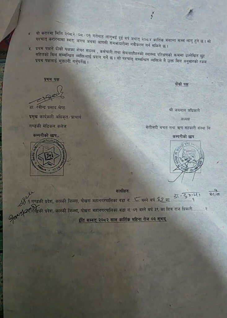 गण्डकी मेडिकल कलेज टिचिङ हस्पिटल (जीएमसी) र सेतीमादी बचत तथा ऋण सहकारी संस्थाबीच सम्झौता भएको छ ।