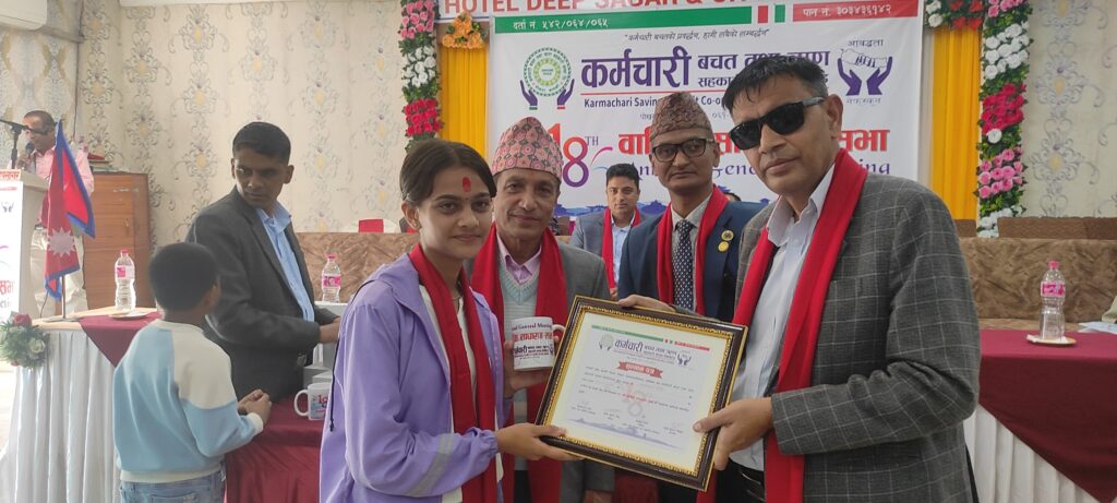 सहकारीले सयेर सदस्य रमेश पौडेल, भगवती सिग्देल, डिल्लीराम बास्तोला, खैसरा पौडेल, भरत गिरी, मञ्जु गौतम, बालक कृशल सापकोटा, नोरा मल्ललाई प्रमाणपत्र र कपले सम्मान गरेको कर्मचारी साधना ढुंगानाले जानकारी दिइन् ।