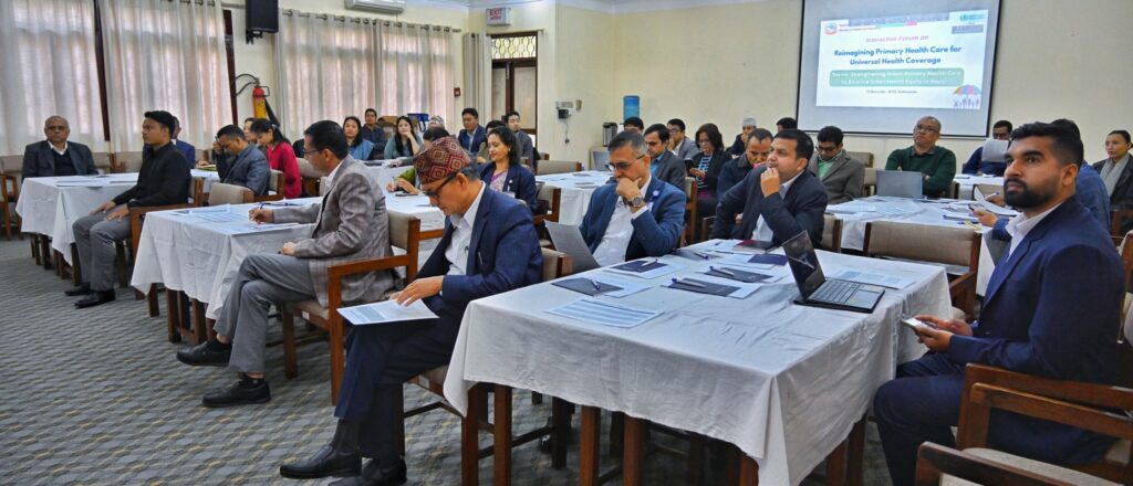 स्वास्थ्य तथा जनसंख्या मन्त्रालय र नेपालका लागि विश्व स्वास्थ्य संगठनको देशीय कार्यालयले युनिसेफ र संयुक्त राष्ट्र मानव बस्ती कार्यक्रमसँगको सहकार्यमा ‘नेपालमा सहरी स्वास्थ्य समता प्रवर्द्धनका लागि सहरी प्राथमिक स्वास्थ्य सेवा सुदृढीकरण’ भन्ने नाराका साथ विश्वव्यापी स्वास्थ्य कभरेजका लागि प्राथमिक स्वास्थ्य सेवासम्बन्धी अन्तर्क्रियात्मक मञ्च आयोजना गरेको छ।