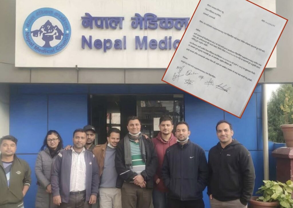 यता, नेपाल मेडिकल काउन्सिलले मङ्सिर १६ र १७ गतेका लागि विशेषज्ञ दर्ता (लाइसेन्स) परीक्षा तोकेको छ, जसका लागि फारम भर्ने अन्तिम म्याद मङ्सिर ४ गतेसम्म थियो। विश्वविद्यालयको परीक्षा नै मङ्सिर ८ गते सकिएकाले विद्यार्थीहरूले ४ गतेसम्मको फारम भर्ने मौका गुमाउन पुगेका हुन्।