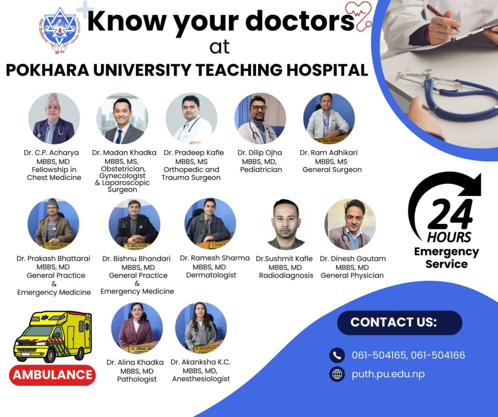 पोखरा विश्वविद्यालय, स्वास्थ्य विज्ञान सङ्काय अन्तर्गत वडा – ३० खुदीमा शिक्षण अस्पताल पूर्ण सञ्चालनमा आएको छ ।