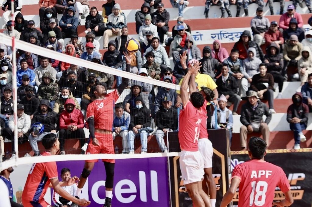 पोखरा रंगशालास्थित भलिबल कोर्टमा जारी च्याम्पियनसिपअन्तर्गत आजको दोस्रो खेलमा पुरुषतर्फ एपीएफले माल्दिभ्सलाई ३–० को सोझो सेटमा पराजित गरेको हो ।