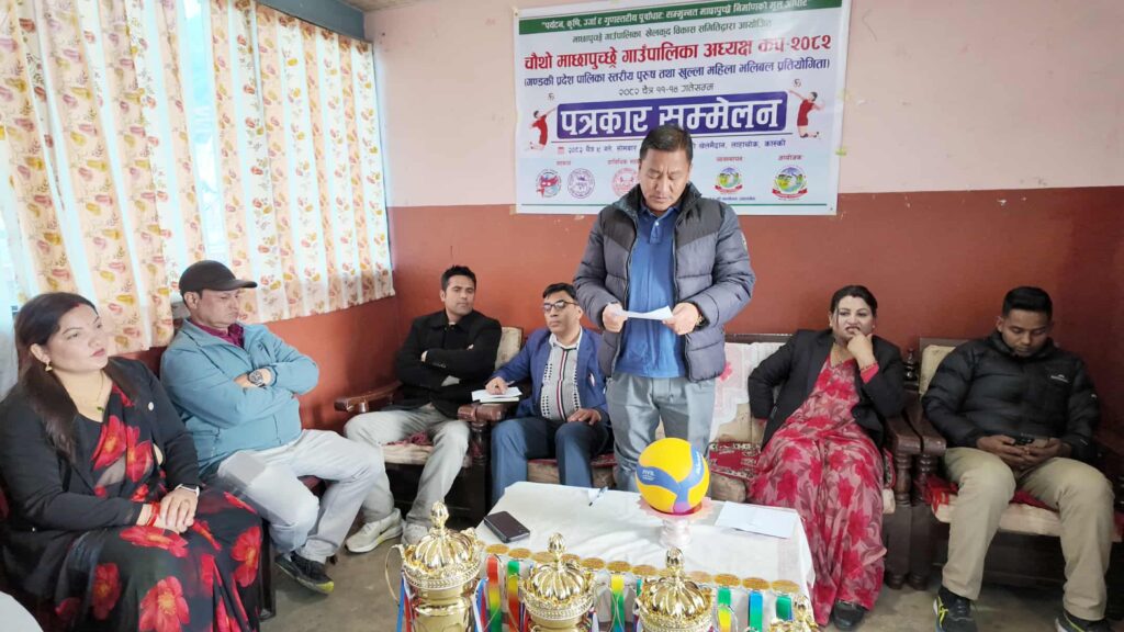 माछापुच्छ्रे गाउँपालिका खेलकुद विकास समितिको आयोजनामा चैत ११ देखि १४ गतेसम्म गण्डकी प्रदेशस्तरीय पालिका भलिबल प्रतियोगिताको तयारी पूरा भएको सोमबार पत्रकार सम्मेलन गर्दै जानकारी दिएको हो ।