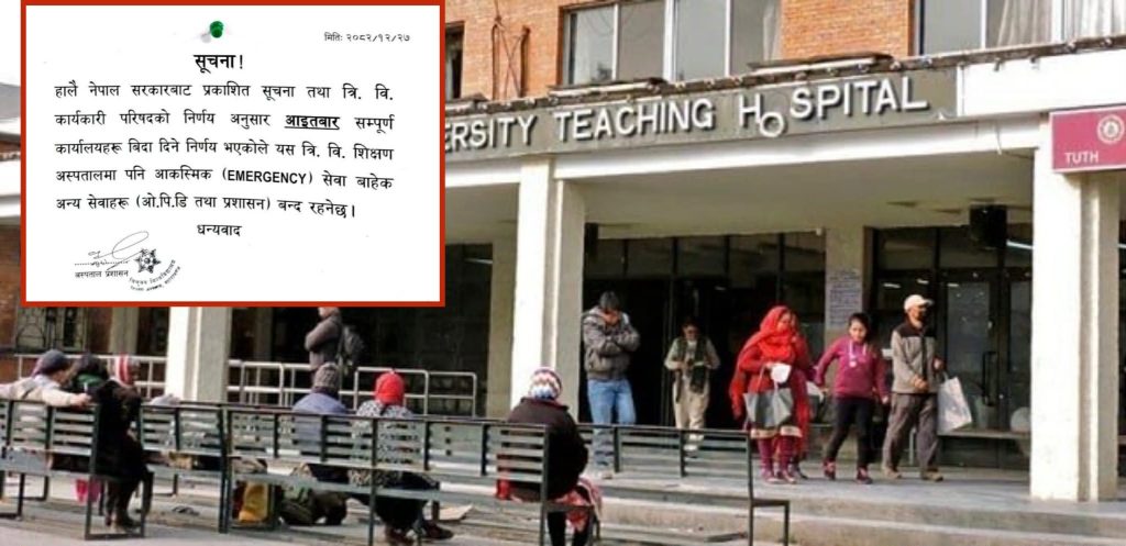 शिक्षण अस्पतालले भन्योः – ‘आइतबार ओपीडी सेवा दिन सकिँदैन’