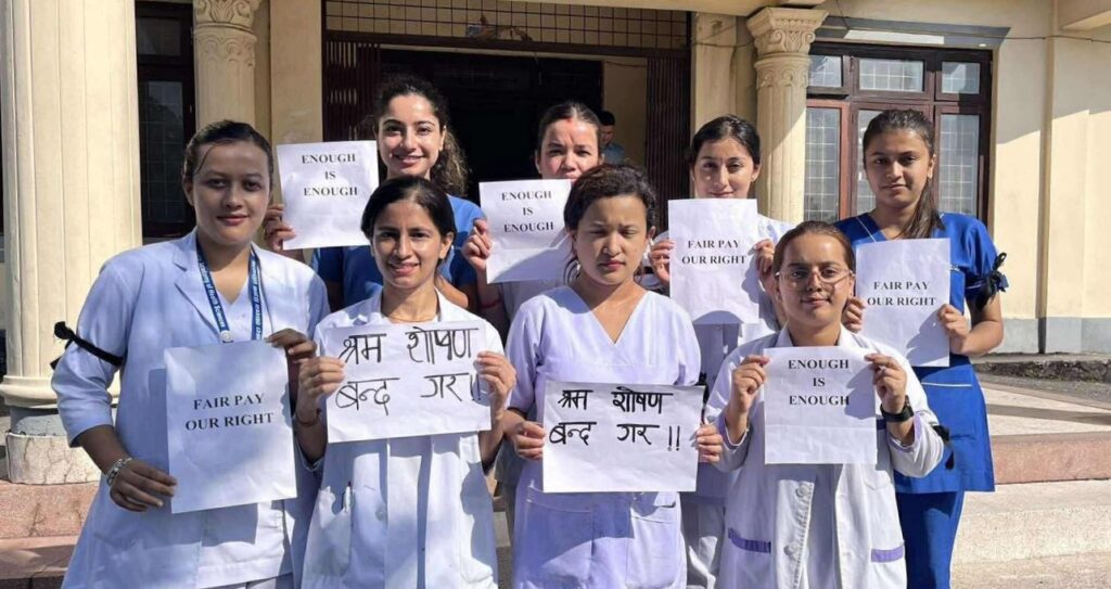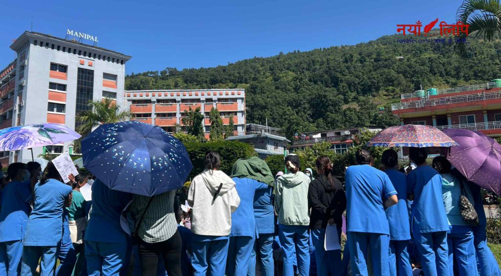 सरकारी अस्पतालसरहको तलबलगायतका सेवा, सुविधाको माग गर्दै पोखराको मणिपाल शिक्षण अस्पतालका नर्सहरुको आन्दोलन निरन्तर छ । यसअघिदेखि नै तलब, सेवा