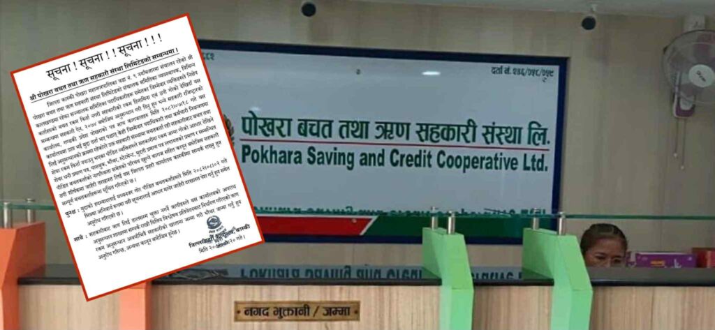 पोखराको नयाँबजारस्थित पोखरा बचत तथा ऋण सहकारी संस्था लिमिटेडले निक्षेपकर्ताहरूको बचत रकम फिर्ता नगरी ठगी गरेको आरोपमा जिल्ला प्रहरी कार्यालय