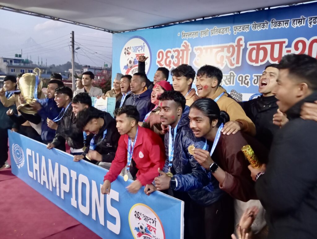 पोखरा । स्याङ्जा जिल्लाको प्रतिनिधित्व गर्ने होराइजन क्लब वालिङ्गले २६ औँ आदर्श कप फुटबल प्रतियोगिता २०८२ को च्याम्पियन बनेको छ।