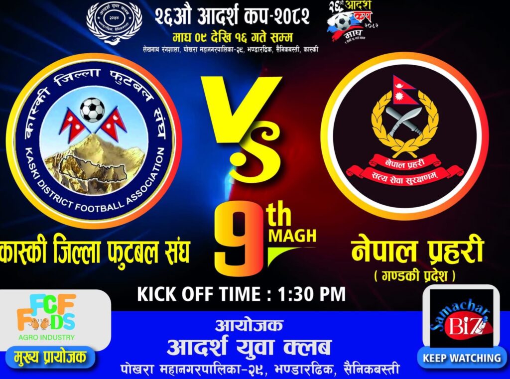 आदर्श कपको तयारी पूरा,उद्घाटन खेल कास्की जिल्ला फुटबल सङ्घ र नेपाल प्रहरी बिच हुने
