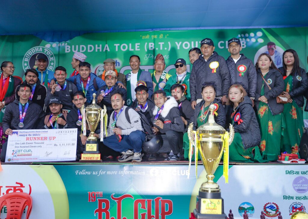 पोखरा । पोखरामा जारी ‘नवौं विरेन स्मृति एवम् १९ औं बिटी कप सेभेन ए साइड खुल्ला फुटबल प्रतियोगिता’का क्रममा राष्ट्रिय
